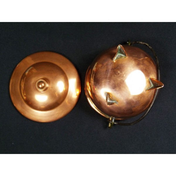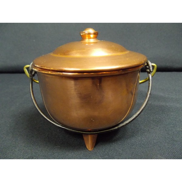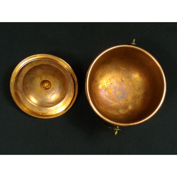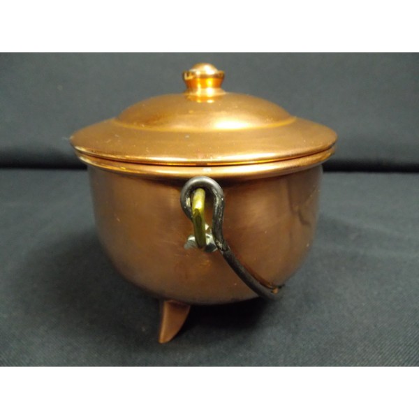 Très joli pot en cuivre, petit chaudron couvert sur trois pieds, sans marque apparente.
