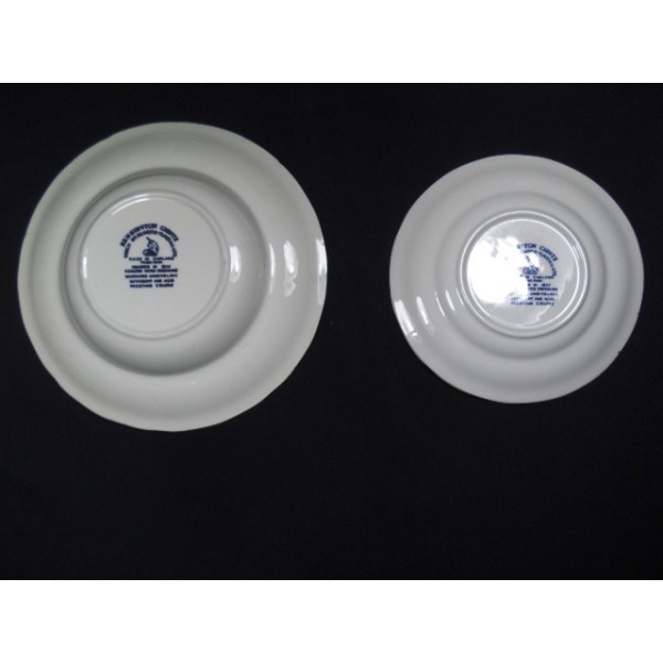dimensions : diamètre assiette plates: 25,5cms, diamètre assiette creuse:22,2cms, diamètre assiette à dessert:17,5cms