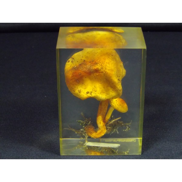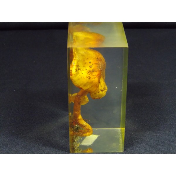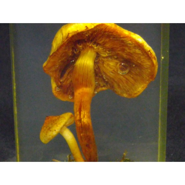 Champignon en inclusion dans un bloc de résine