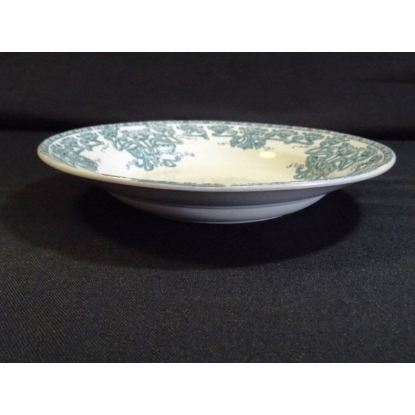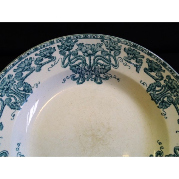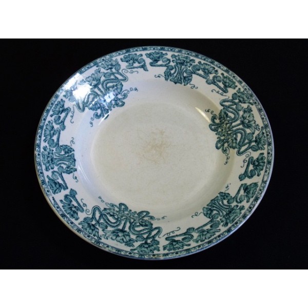 Assiette creuse en faïence Terre de Fer modèle Marsala, décor de fleur de pavot vert, époque art nouveau vers 1900.
