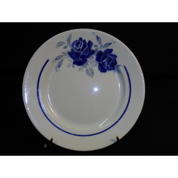 Assiette plate en faïence estampillée Badonviller France, modèle Strasbourg, décor bleu, vers 1930.