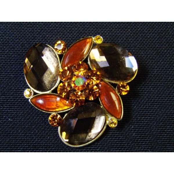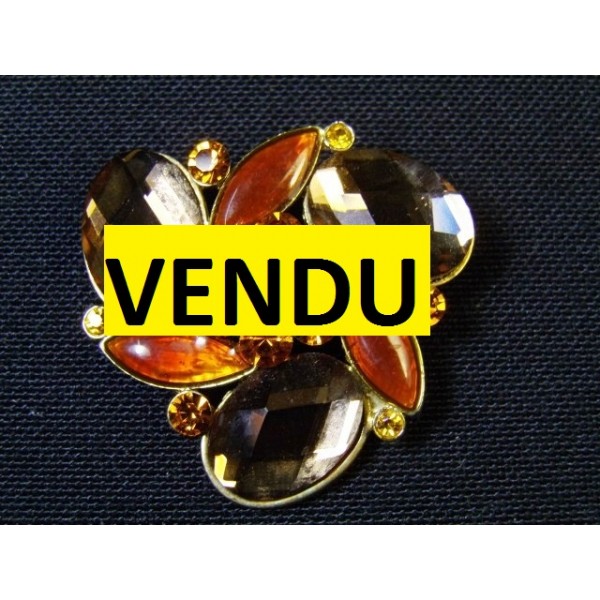 Broche fantaisie en métal ornée de pierres d'imitation brunes et orangées, années 70.