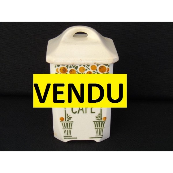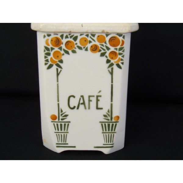 Pot à épice en faïence vers 1930, pour le café, décor d'orangers en pot, pas de marque, numéroté 711-3.