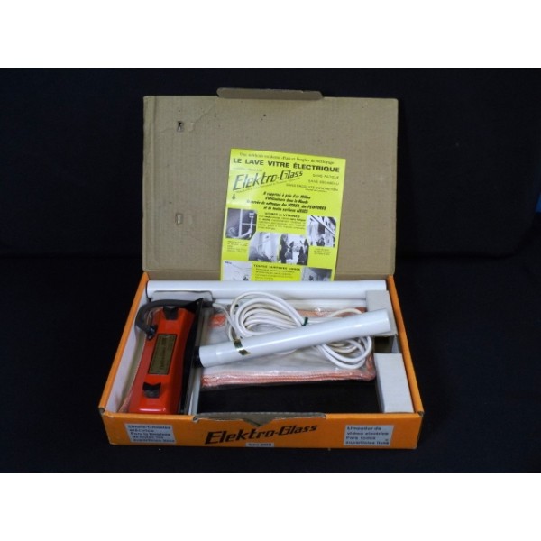 Ancien lave-vitre électrique vintage marque elektro-glass modèle type 2000, vers 1970, dans sa boîte avec les accessoires. A été testé, fonctionne.