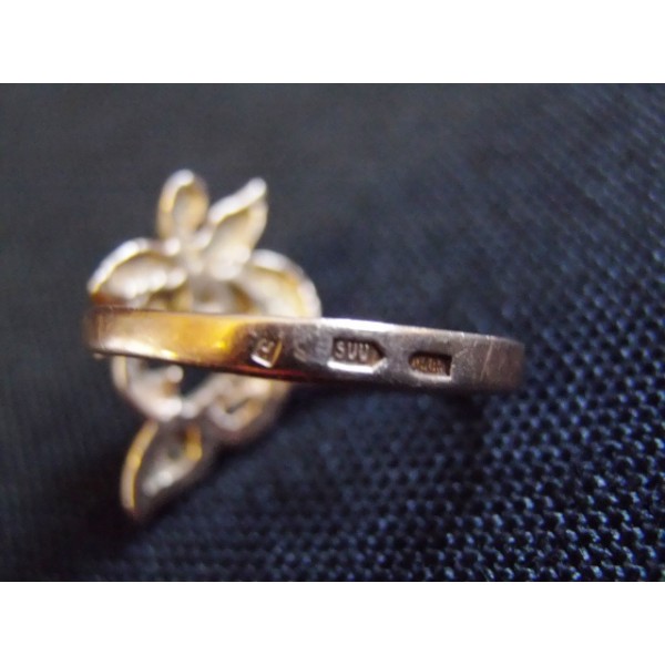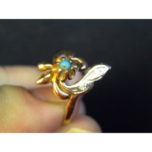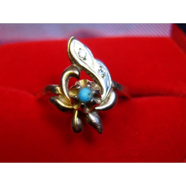 Bague ancienne or 14K ornée de turquoise et pierres blanches