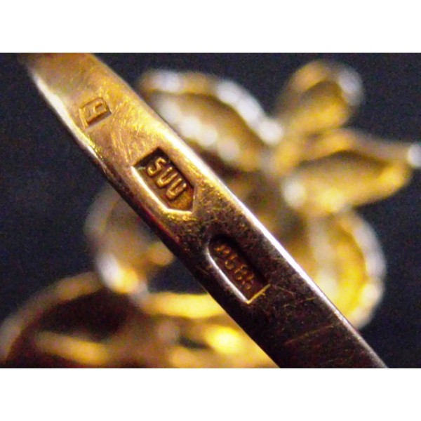Jolie bague ancienne en or 14 carats (poinçon 585), ornée d'une petite pierre de turquoise (avec un petit trou pas visible sur la photo ou à l'oeil nu), et 2 petites pierres blanches (zircons?), provenance étrangère.