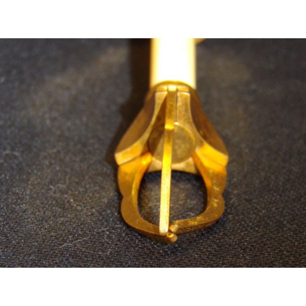 Pince à sucre système Le Crabe en métal doré et bakélite imitant l'ivoire, estampillée "Le Crabe" made in France, vers 1960.