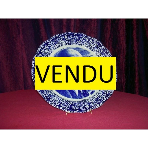 Plat en porcelaine ,décor pêcheur,de Delft Des Frères Boch-La Louvière