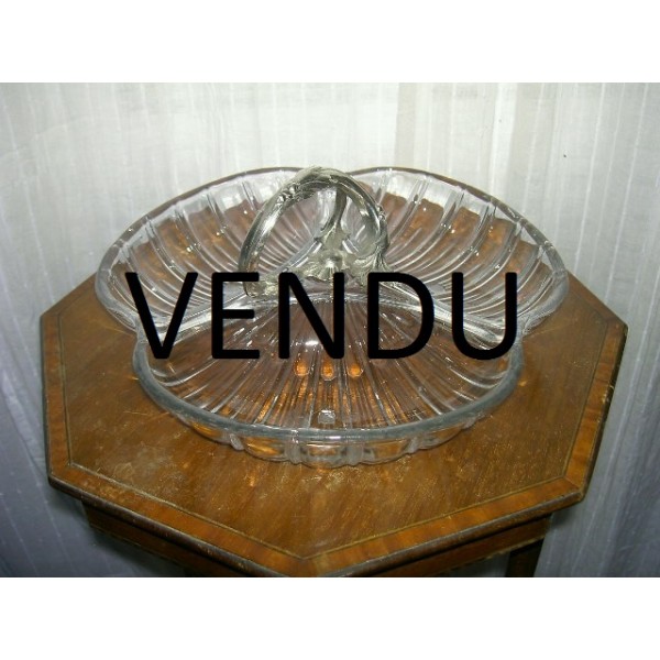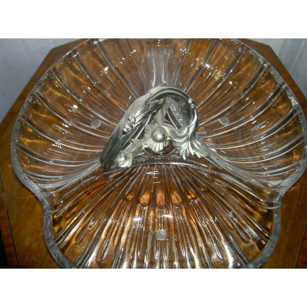Du plus bel effet sur vos table, ce superbe serviteur à hors d'oeuvre en verre, poignée en bronze argenté de style Louis XVI, il est ancien et en parfait état.