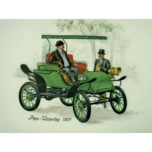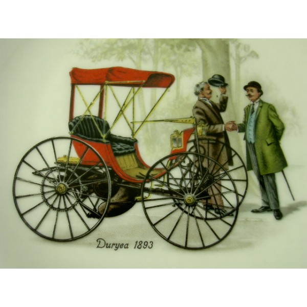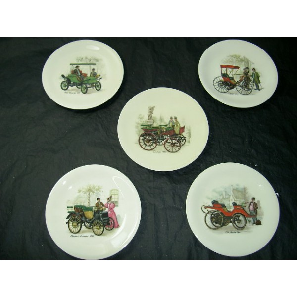 lot de 5 Assiettes à dessert en porcelaine de limoges, série numérotée, décor véhicules anciens