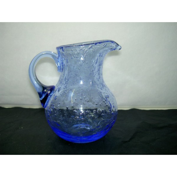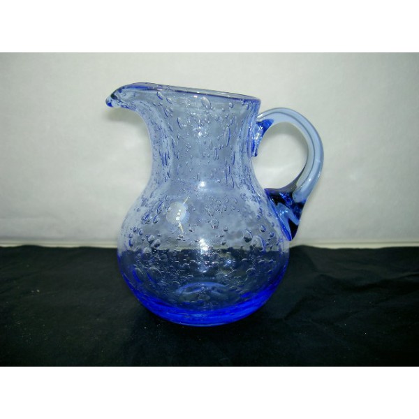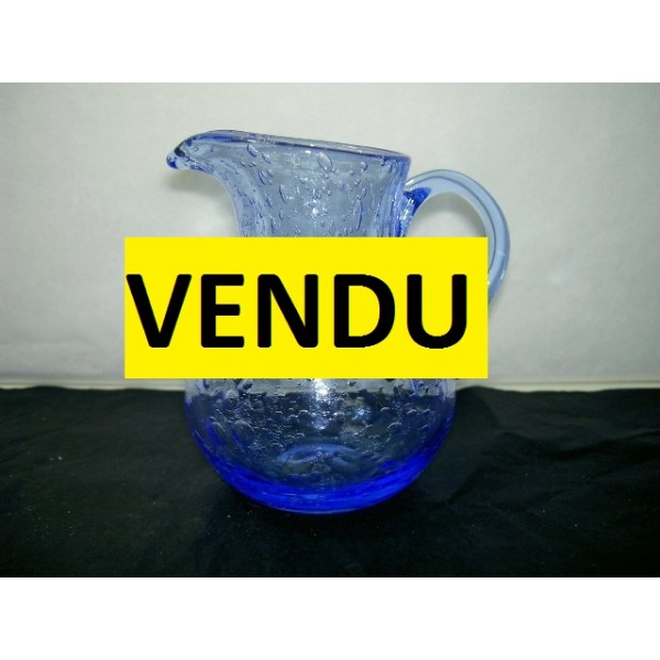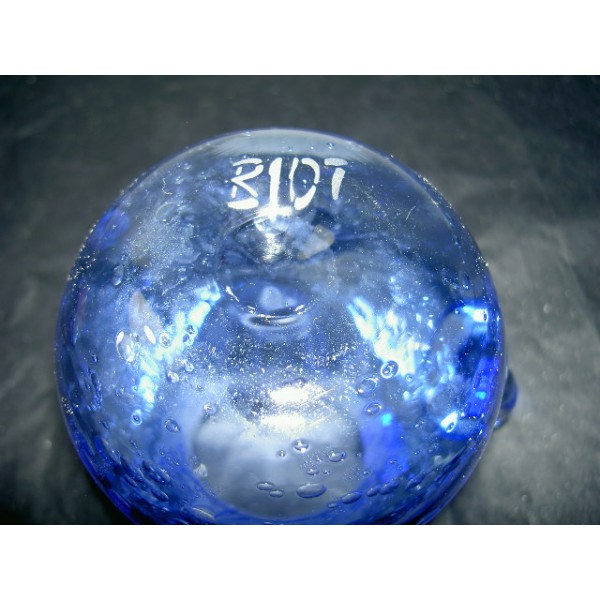 Petit pot à crème en verre soufflé bleu signé Biot.