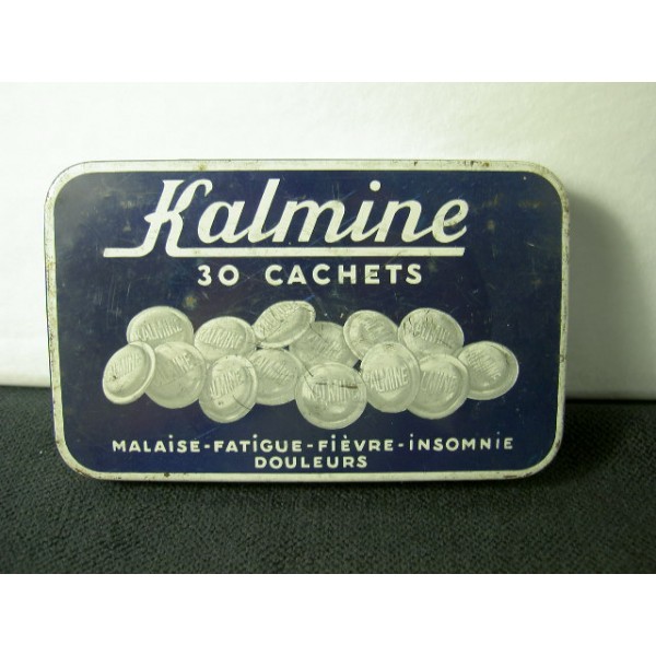 Boîte ancienne de 30 cachets Kalmine du docteur Paul Métadier, en métal