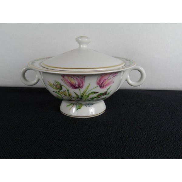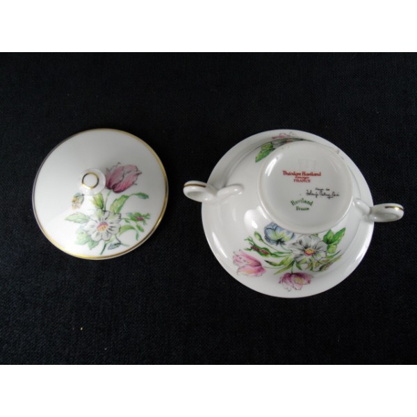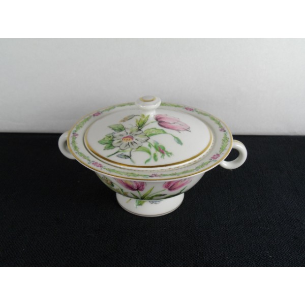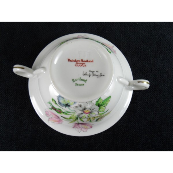Sucrier en porcelaine estampillé Théodore Haviland à Limoges, décor main signé Solange Patry-Bié