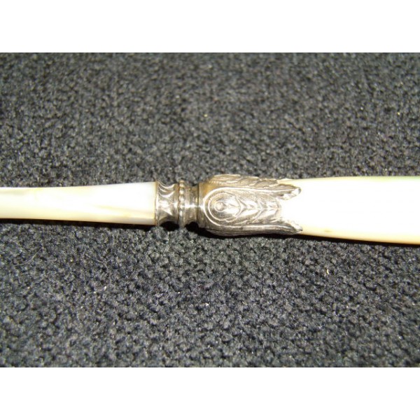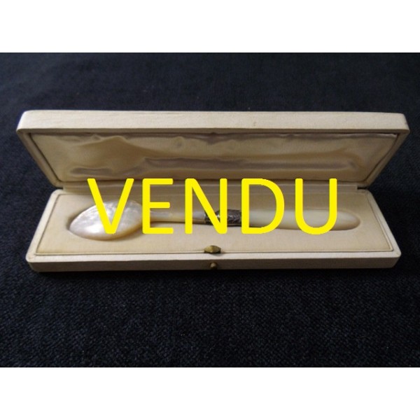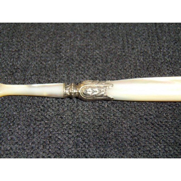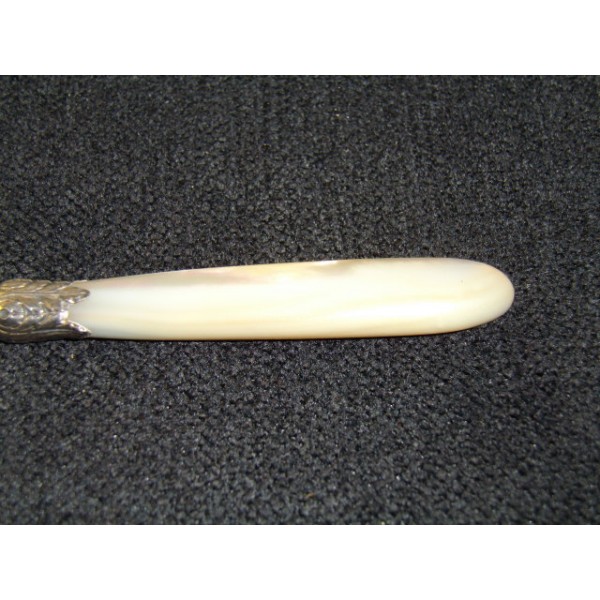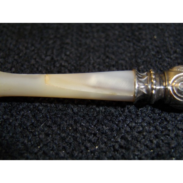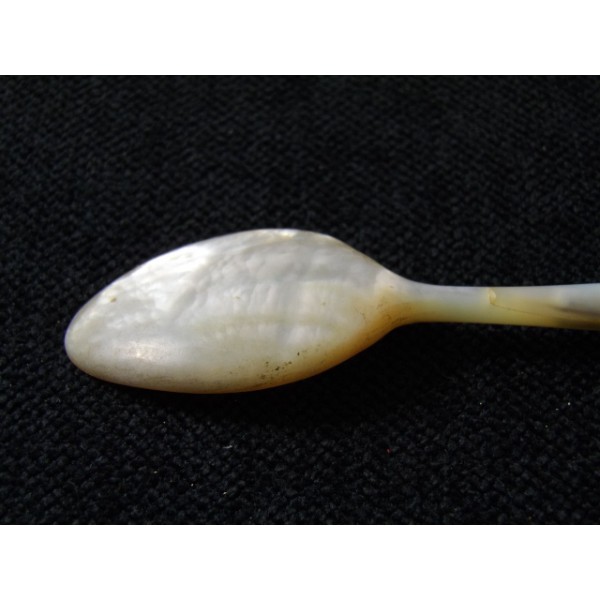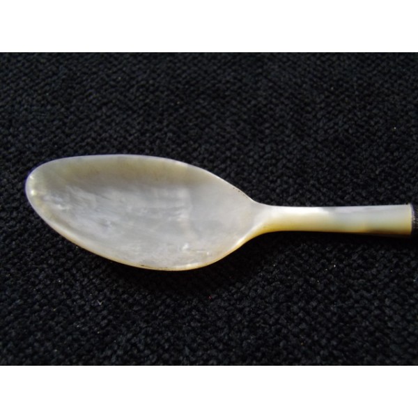 Cuillère ancienne à bouillie en nacre avec virole en argent non poinçonnée