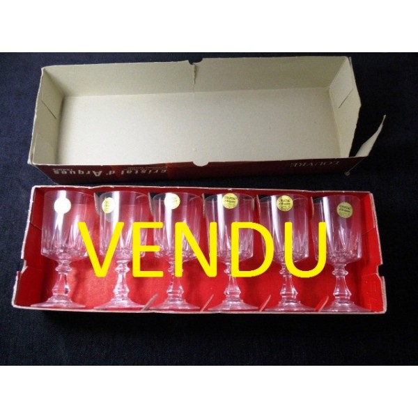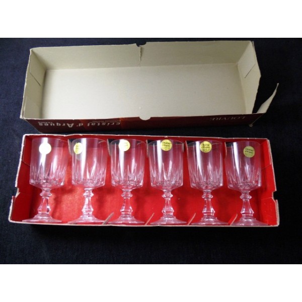 Coffret de 6 verres à pied à vin modèle Louvre, cristal de la maison cristal d'arques