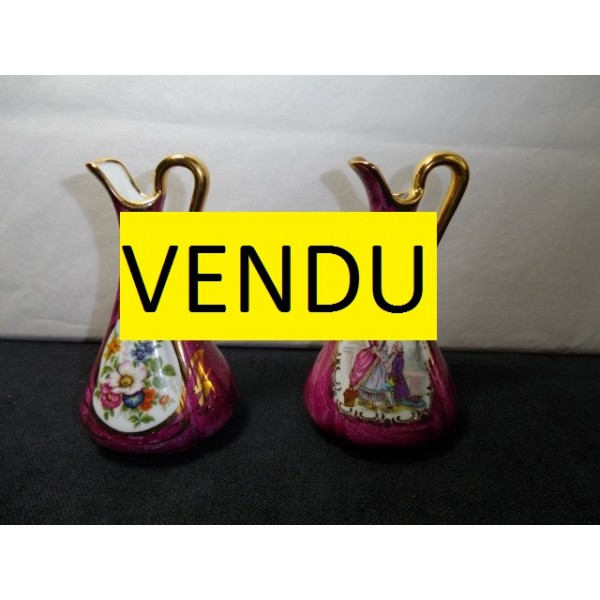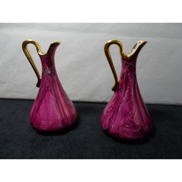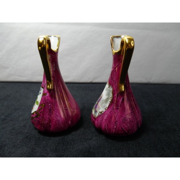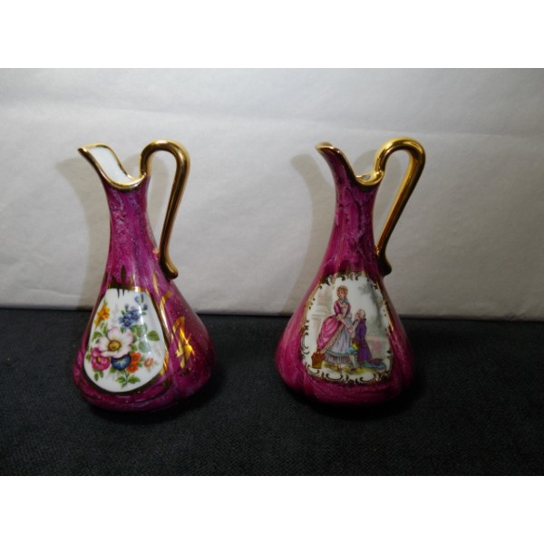Paire de petits vases forme aiguière en porcelaine estampillés Claude Brachet à Limoges