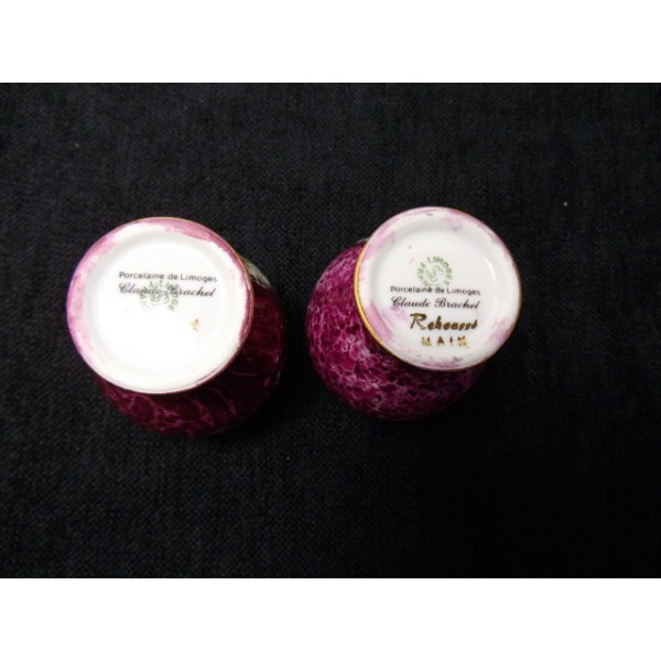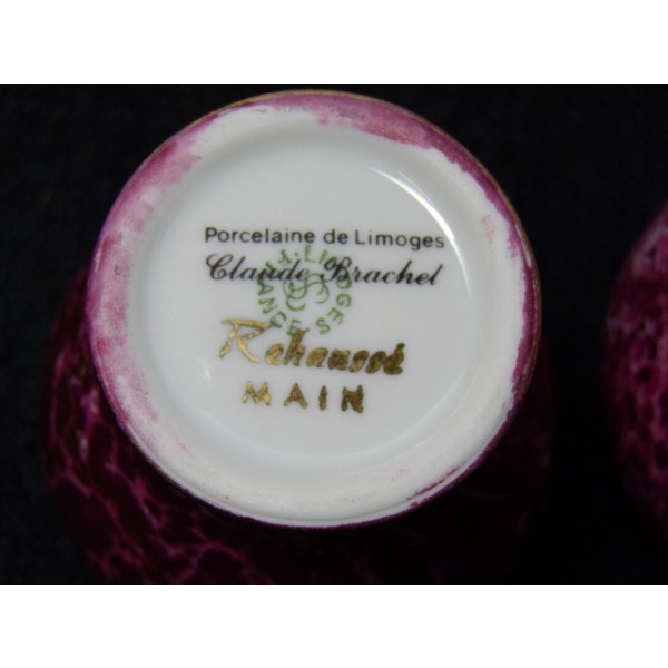 Paire de petits vases boules en porcelaine de limoges estampillés Claude Brachet.