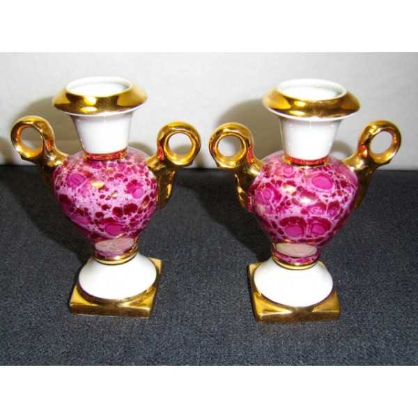 Paire de petits vases forme médicis en porcelaine estampillée Limoges France.