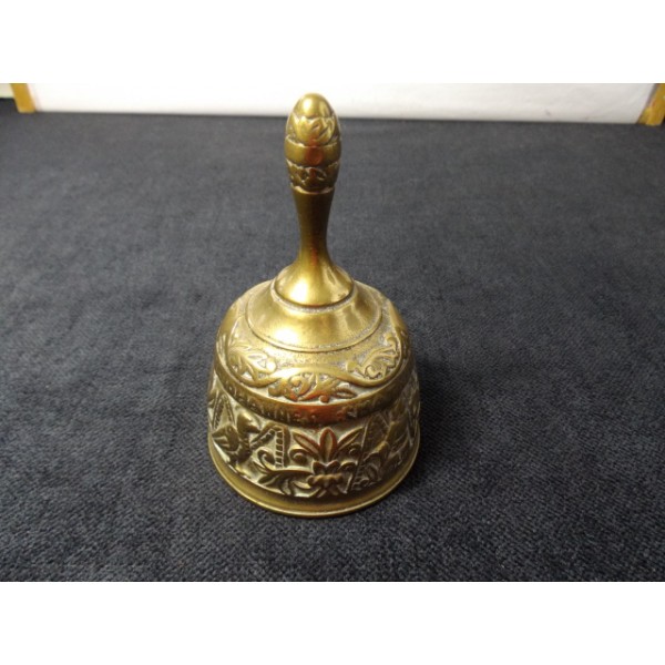 très belle cloche en bronze décorée d'une frise avec animaux, végétaux et personnages, avec les inscriptions, marcus, johannes, lucas, matheus