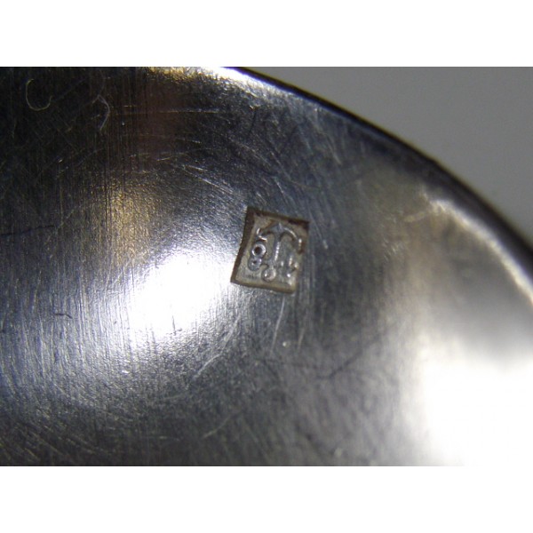 Coffret de 12 petites cuillères en métal argenté de style art nouveau à décor de coquelicot, début XXème, poinçons une ancre marine, Frenais blanc, dans leur coffret d'origine marqué G. AUGE à Angoulême.