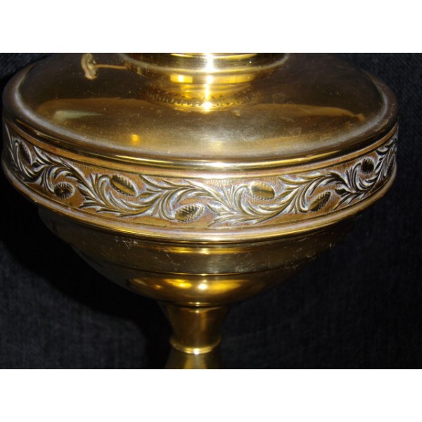 Lampe à pétrole ancienne en laiton de la marque Unis France.