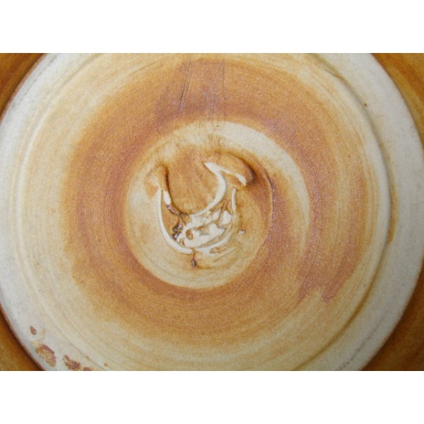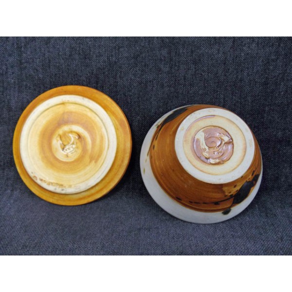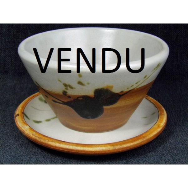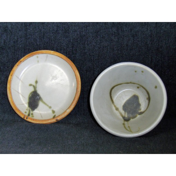 Bol et soucoupe en céramique avec tampon en creux pour signature.