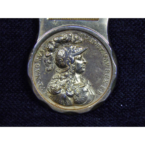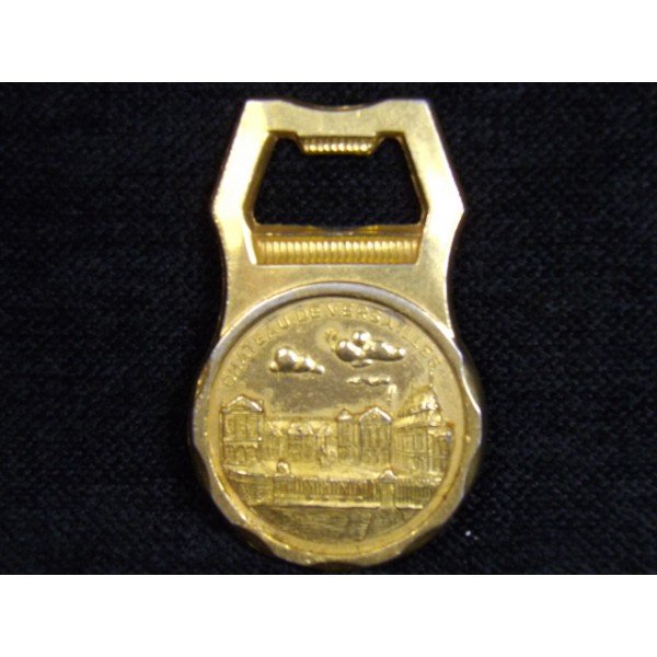 Décapsuleur en métal doré à l'effigie de Louis XIV et du chateau de Versailles.