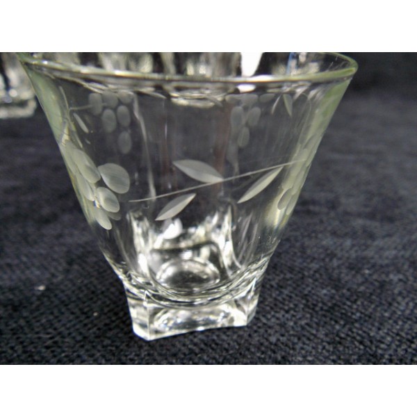 Ensemble de 11 petits verres à porto en verre à décor de grappes gravées des années 50.