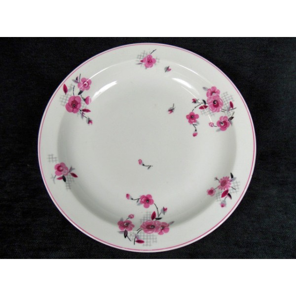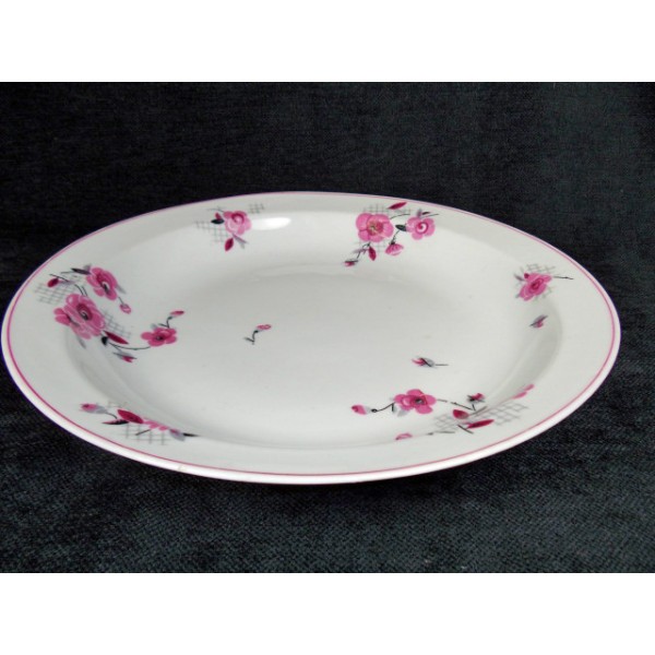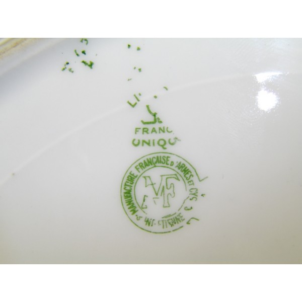 Plat de service rond creux en porcelaine ancienne des années 30, estampillé MF manufacture française