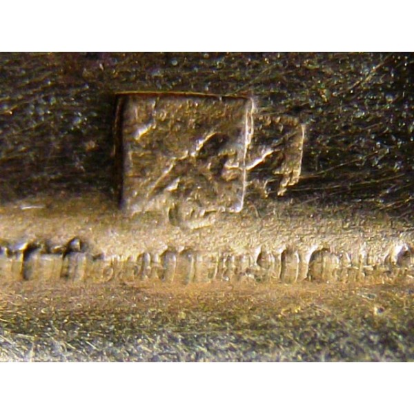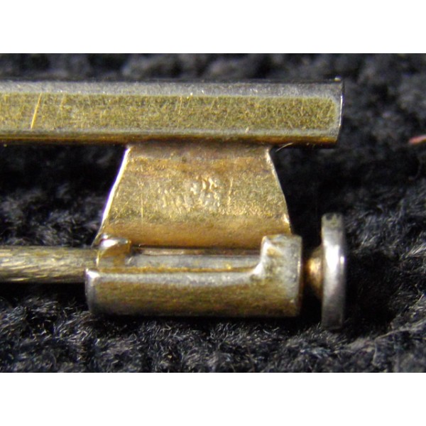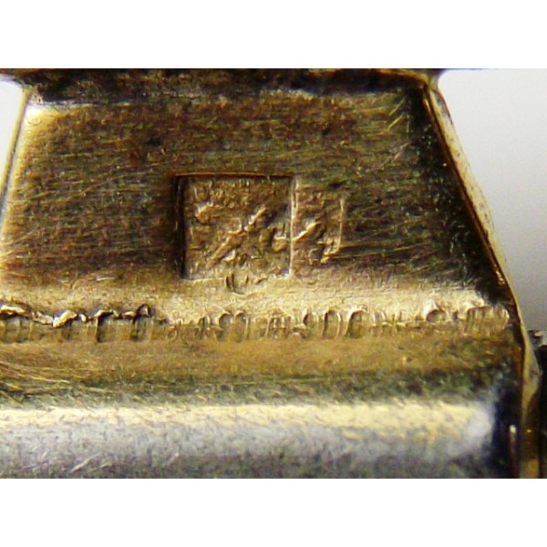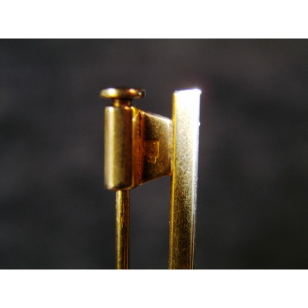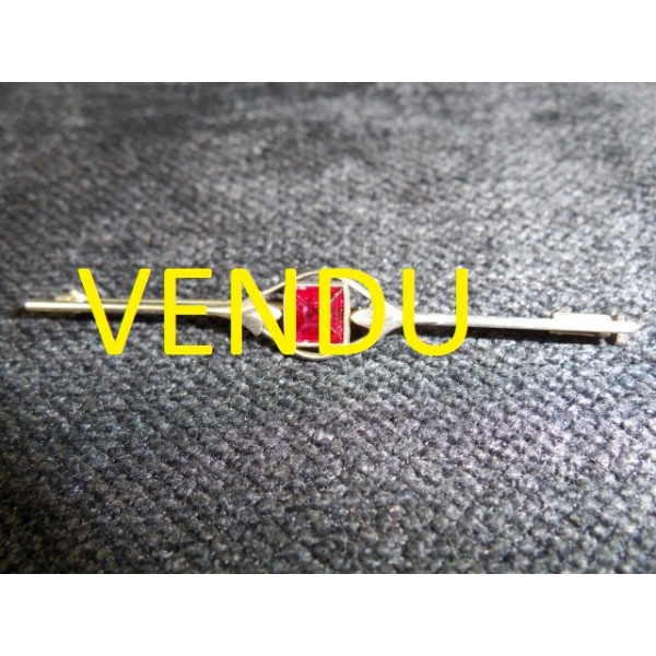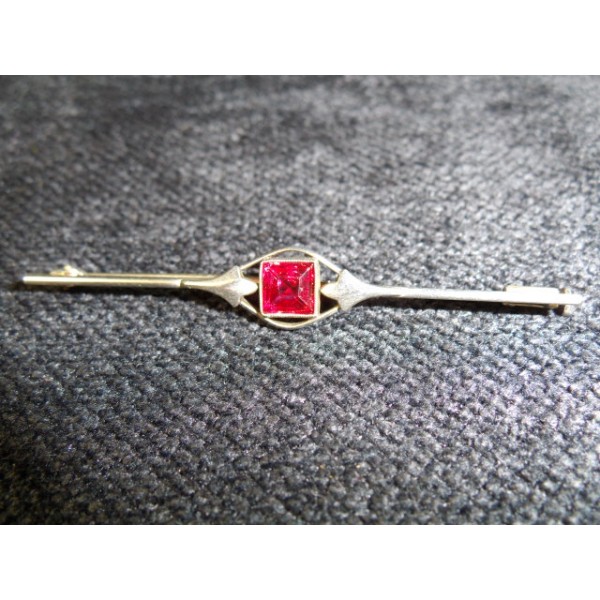 Broche barette ancienne ornée d'une pierre rose (tourmaline?), début XXème, en plaqué or, poinçon d'orfèvre illisible.