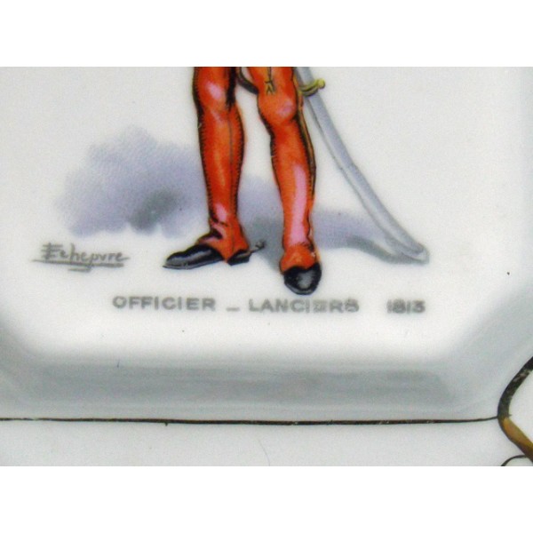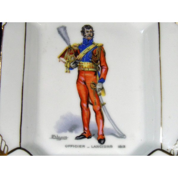 Coupelle cendrier en porcelaine de limoges décor signé d'un officier-lanciers de 1813 de l'armée de napoléon