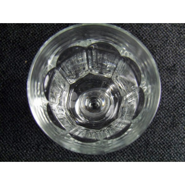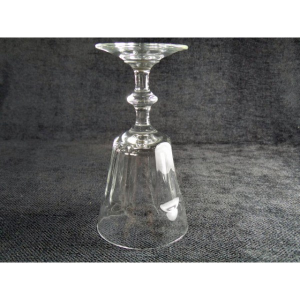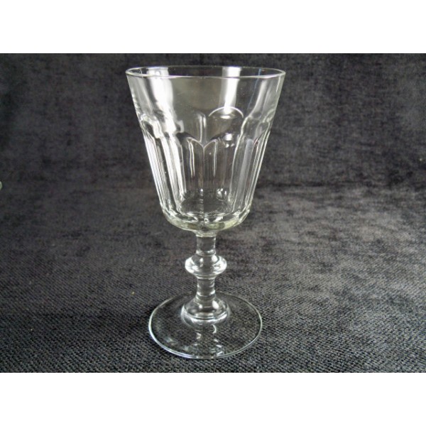 Verres à vin ou à vin cuit, sur pied, facetés, en verre, anciens, en série de 6.