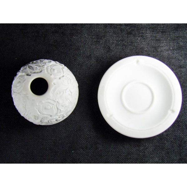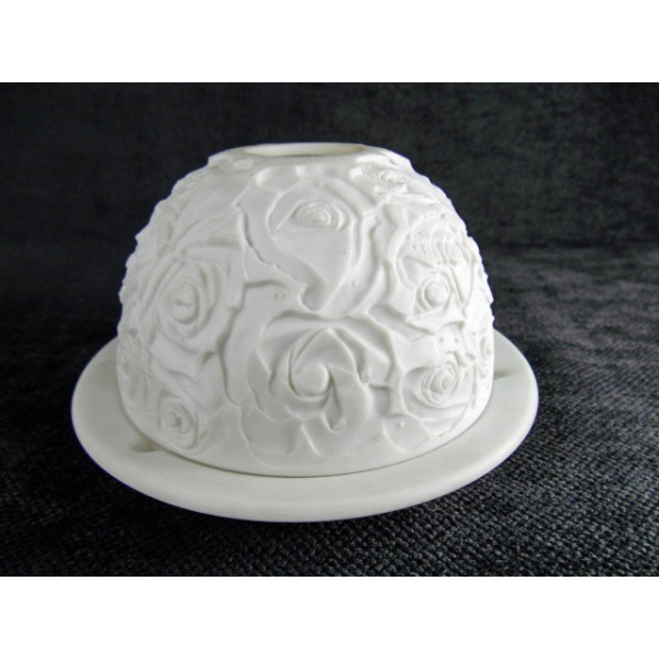 Photophore en porcelaine biscuit de la maison Bernardaud, à décor de roses.
