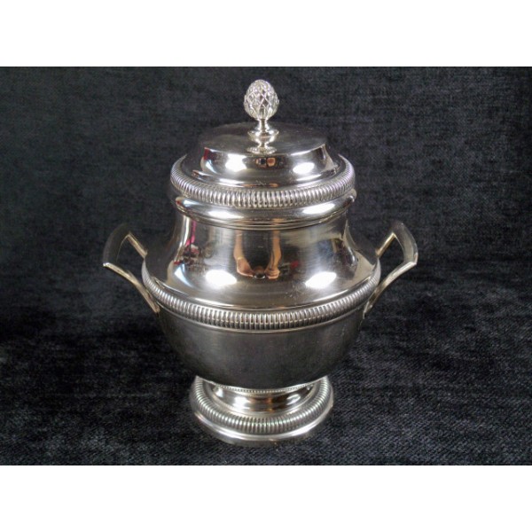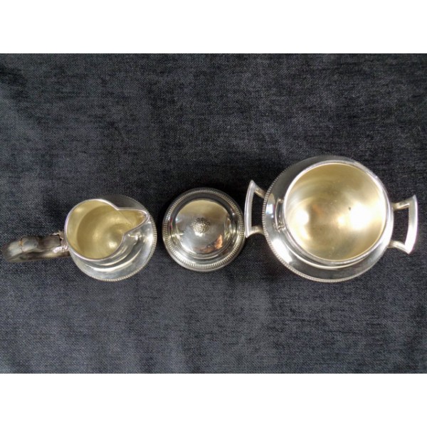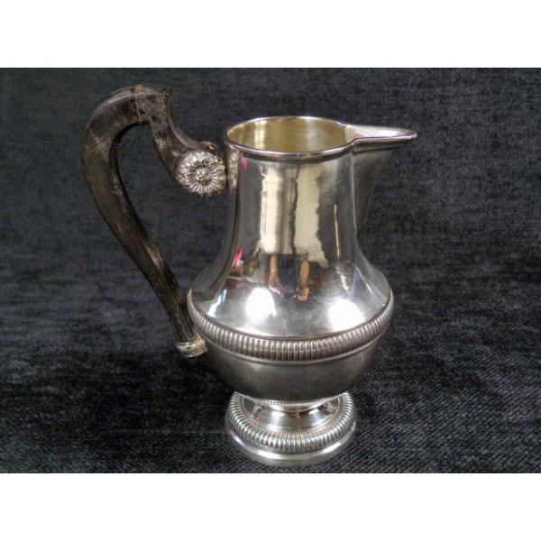 Ensemble pour le service du café en métal argenté , fin XIXème début XXème, composé de 2 pièces : un pot à crème manche ébène, sucrier avec prise pomme de pin, poinçons d'orfèvre (FB).