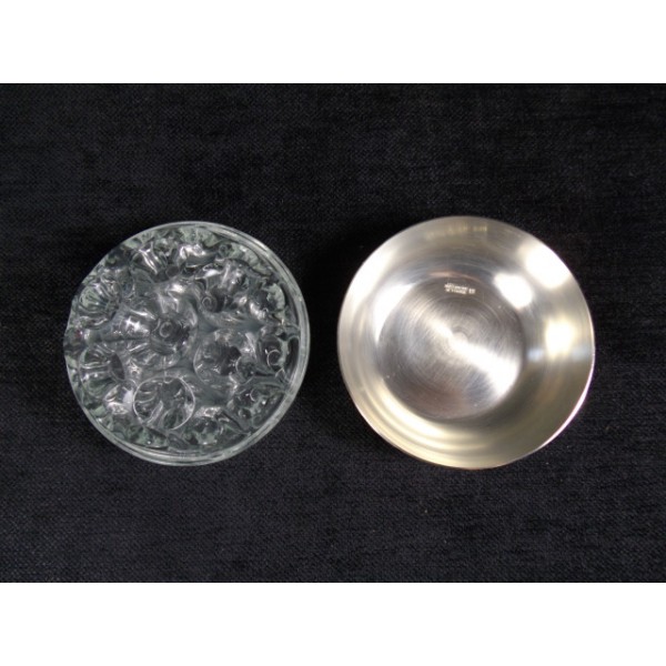 Pique-fleurs en verre dans une coupe en métal argenté, 19 trous, coupelle poinçon orfèvrerie de France, Sté NPA.
