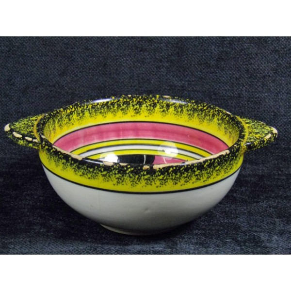 Ancien bol à oreilles en faïence de Quimper signé Henriot, portrait en buste de bretonne.