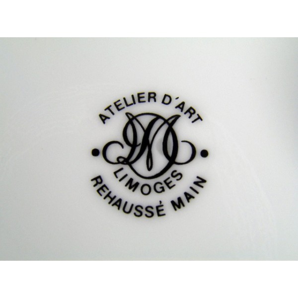 Très bon état, décor floral réhaussé main, estampillé atelier d'art DM Limoges réhaussé main