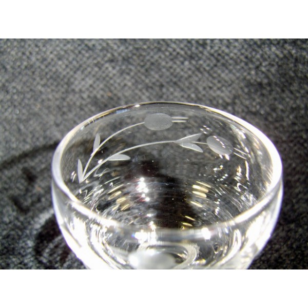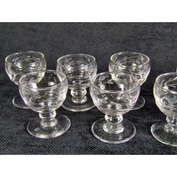 Verres à liqueur anciens 9 pièces, décor de roseaux gravés