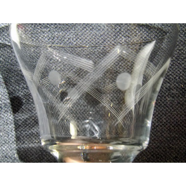 Verres à pied anciens pour l'eau 3 pièces, à décor gravé de forme originale