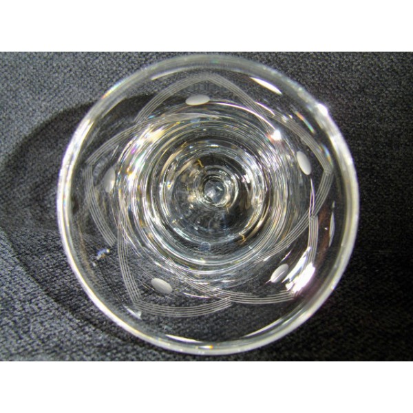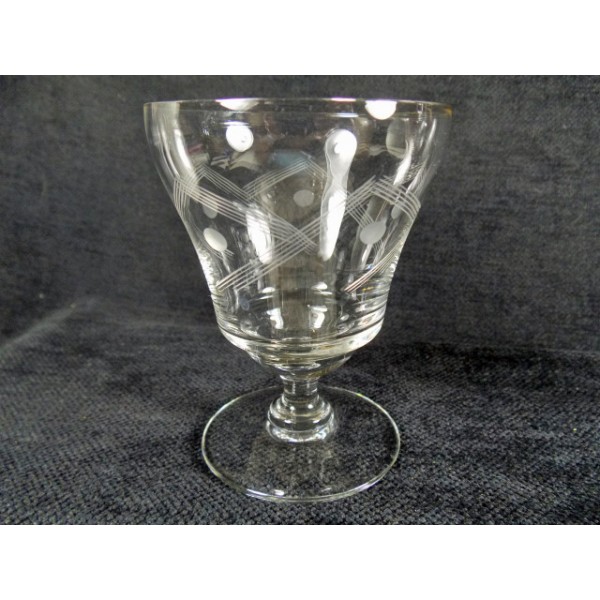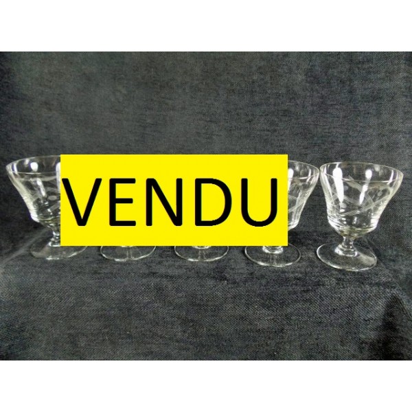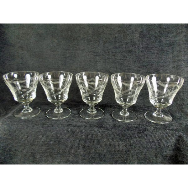 Verres à pied anciens pour le vin 5 pièces, à décor gravé de forme originale