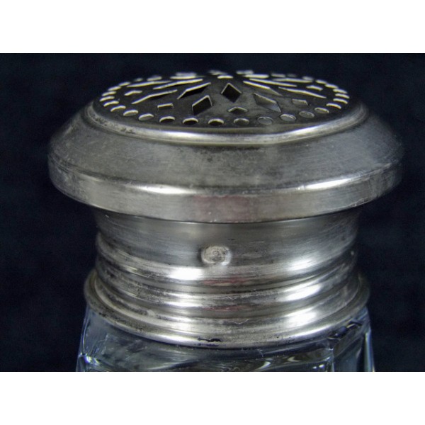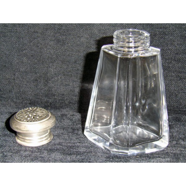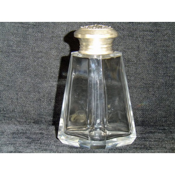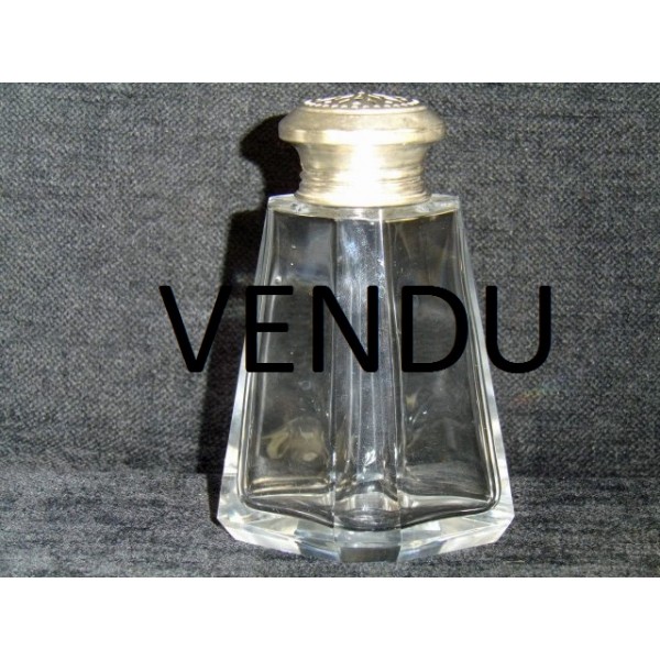 Très beau flacon verseur/ saupoudreur en cristal avec bouchon en argent massif.
