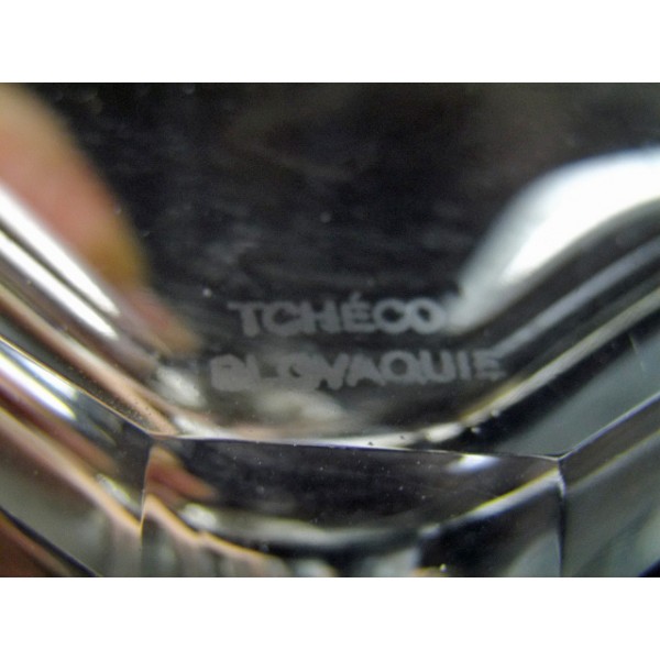 Très bon état, le flacon est estampillé tchécoslovaquia (cristalerie de bohême), le bouchon est poinçonné d'une minerve 1er titre et d'un poinçon d'orfèvre.