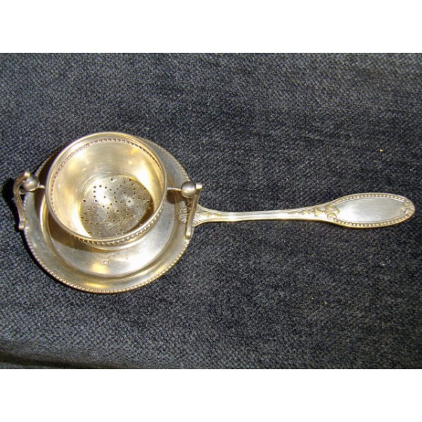Passe-thé en métal argenté à décor perlé, fin XIXème, poinçon Sphinx assis.