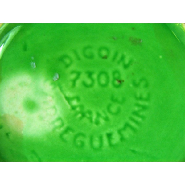 Pichet en barbotine verte à décor tressé marqué digoin sarreguemines france