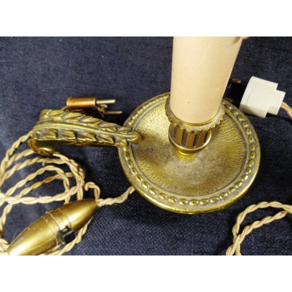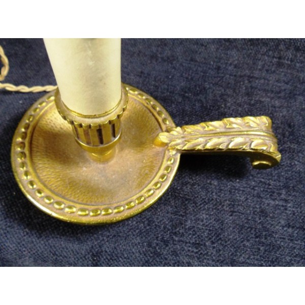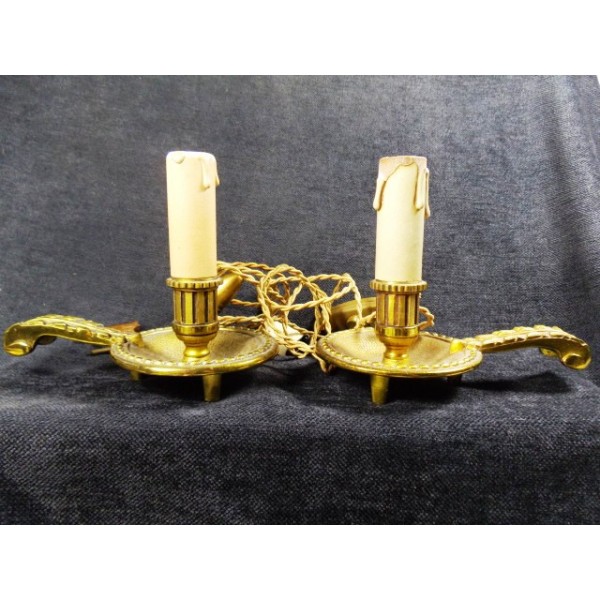 Paire de petits bougeoirs à main en bronze, électrifiés.