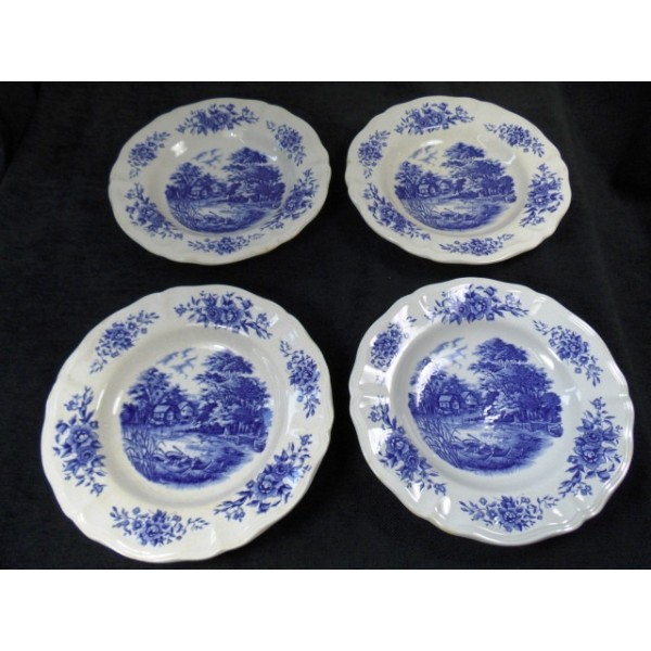 Lot de 4 assiettes à soupe en faïence de Sarreguemines modèle romantic