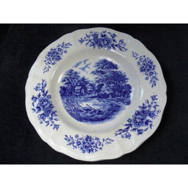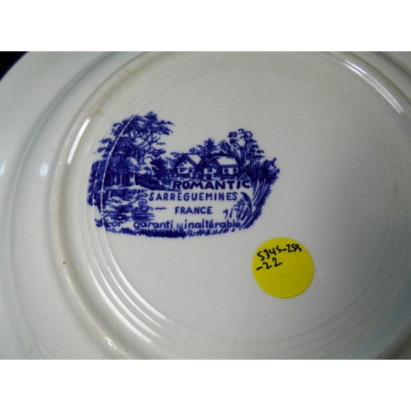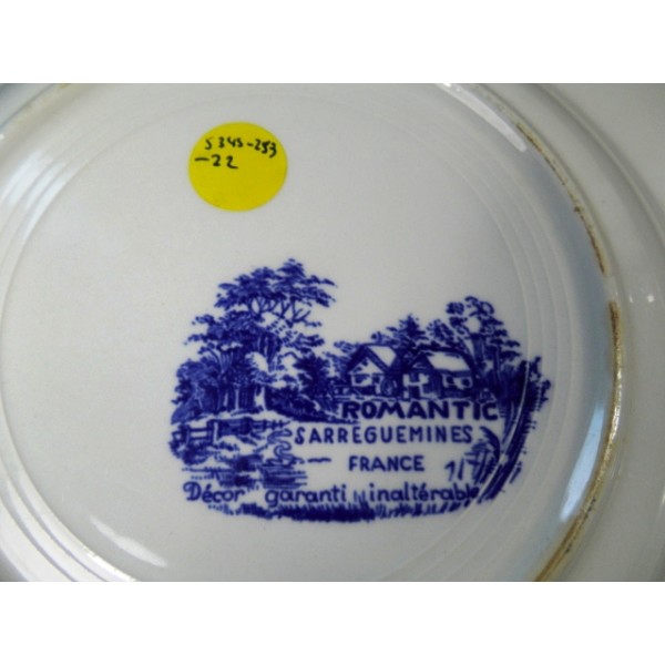 Lot de 4 assiettes à soupe en faïence de Sarreguemines modèle romantic, fabrication récente